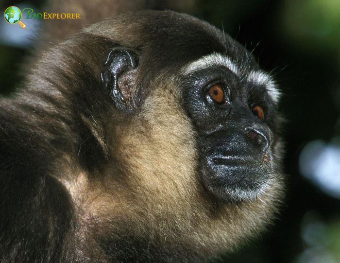 - They have light brown fur that fades to black on the face, chest, and inner arms, with a white border around the face.