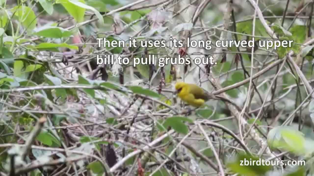• This Hawaiian bird, characterized by its short yet sharp beak, can dig deeper into the bark of trees to pick the insects underneath.