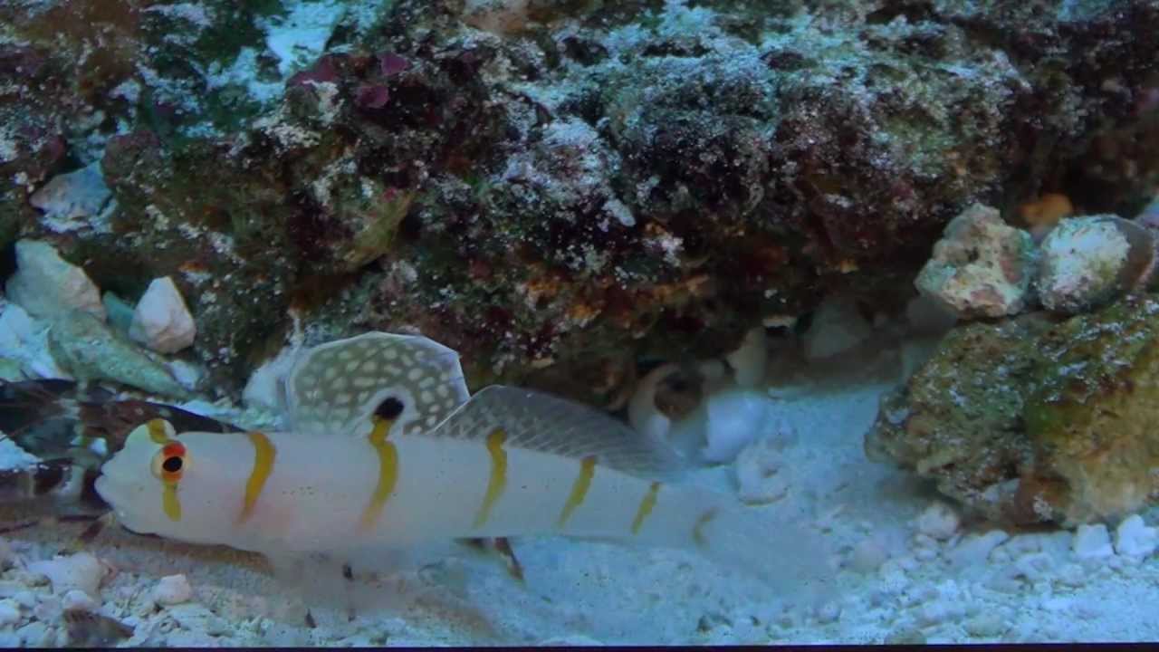 - This shrimp usually feeds on the leftover food and is known to have a symbiotic relationship with goby fishes.