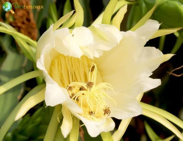The flower stands on a stalk that branches off from the leaf stem close to the ground. The greenish-yellow flowers are surrounded by a green mantle called a spathe. From the flower’s top comes a long, pointed wand known as a spadix.