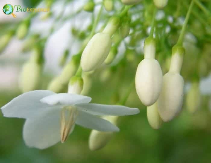 Trichosanthes is a perennial vine native to Japan. These thread-like flowers are aromatic and bloom from summer to early fall. The Trichosanthes cucumerina tangled with other plants or trees.