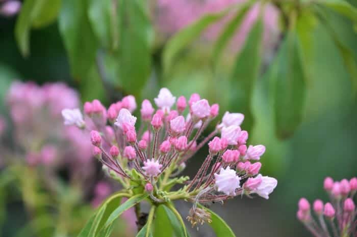Kalmia flowers can only grow wild in a few selected habitats worldwide and are perhaps better known as mountain laurel. It is a bountiful flower with symbolic solid value and rich history growing in clumps of bright white or pink cup-shaped flowers.