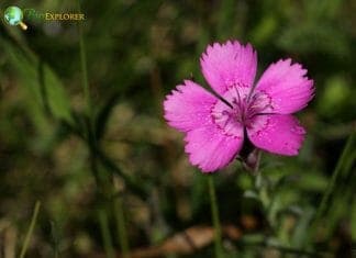 With its natural beauty, the Maiden Pink (Dianthus deltoides) conquers heather and stone gardens. It belongs to the Caryophyllaceae (carnation) family and is widespread in Asia and Europe. Each radially symmetrical flower consists of 5 toothed petals approximately 1 centimeter long, magenta-red to pink in color.