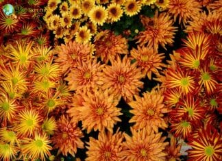 Mums are available in various flower colors, including red, orange, pink, yellow, white, salmon, cream, burgundy, and bi-colors. Mums are the Chrysanthemum genus flowering plants in the Asteraceae family, native to northeastern Europe and eastern Asia. There are 40 known species and thousands of cultivars of chrysanthemums.