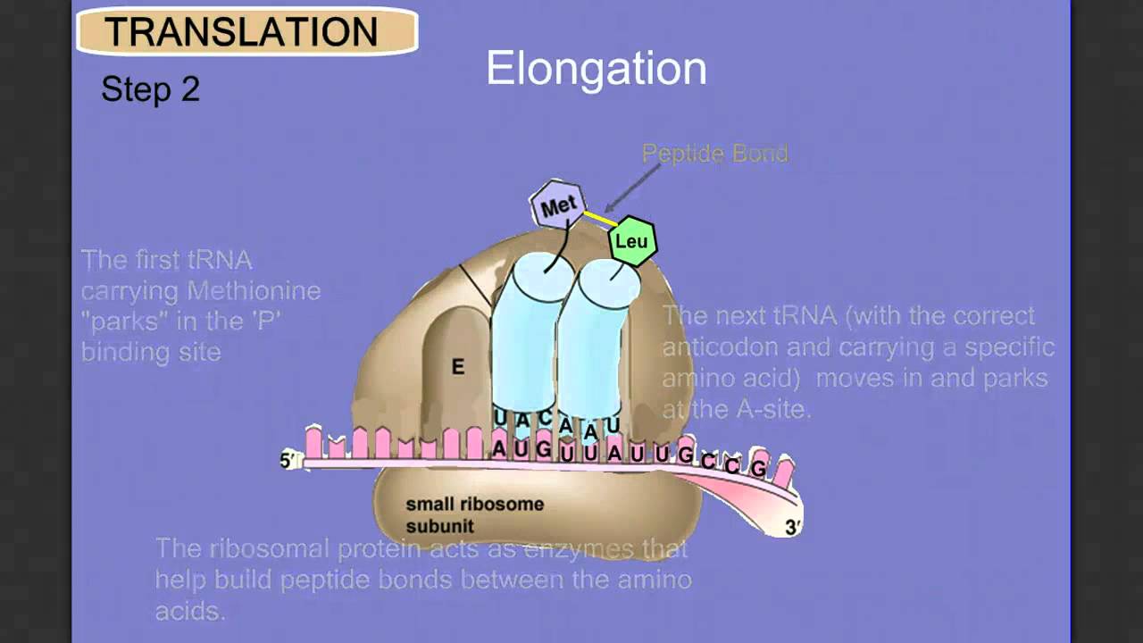 - To formally start elongation, the aminoacyl tRNA binds to the aminoacyl (A) site through pairing up with the second codon of the mRNA sequence.