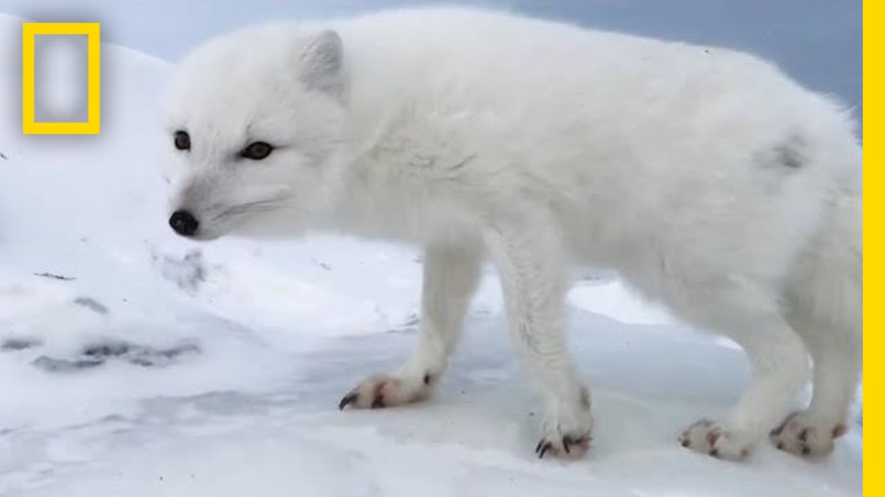 An arctic fox is one of the iconic animals of the region. It has a compact, rounded body and thick fur.