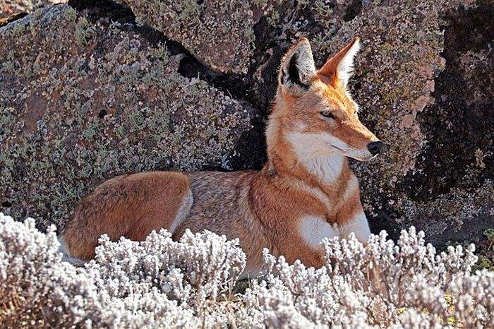 - Ethiopian wolves inhabit rocky areas, shrublands, and afro-alpine grass.